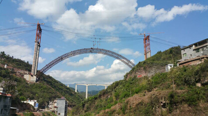 5月13日下午16時,伴隨著機器的轟鳴聲、鞭炮聲、熱烈的掌聲和歡呼聲,900T輪式提梁機將737.6噸箱梁緩緩提起,成