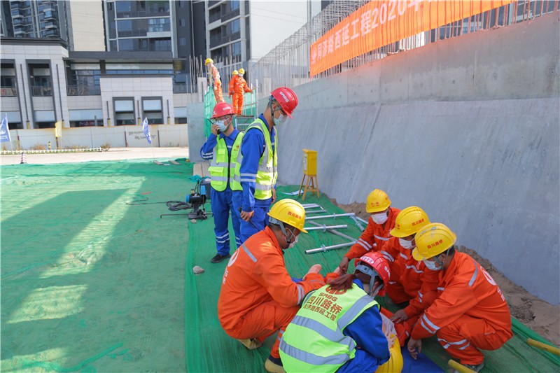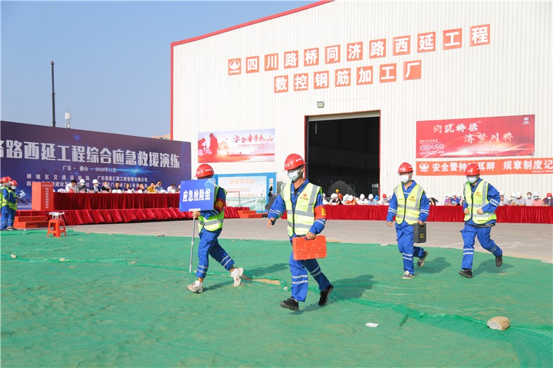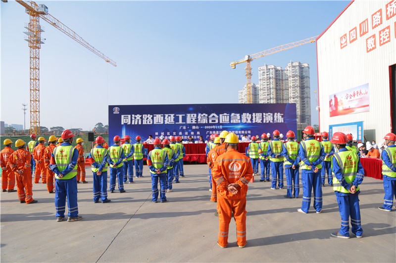 為認(rèn)真貫徹落實(shí)佛山市禪城區(qū)交通運(yùn)輸局印發(fā)《佛山市禪城區(qū)交通運(yùn)輸局(區(qū)軌道交通局)突發(fā)事件應(yīng)急管理工作規(guī)范》和《佛山市禪城區(qū)交通運(yùn)輸行業(yè)突發(fā)事件總體應(yīng)急預(yù)案》的文件精神,不斷提高項(xiàng)目應(yīng)對(duì)突發(fā)事件的應(yīng)急保障能力。2020年11月24日下午15:30,同濟(jì)路西延工程組織開展了2020年綜合應(yīng)急救援演練,禪城區(qū)交通運(yùn)輸局質(zhì)管科科長葉峰、安全科副科長邱建萍、交建科副科長尚建國、廣東佛盈匯建工程管理有限公司總經(jīng)理胡英豪、副總經(jīng)理陳金水、胡永強(qiáng)、總工程師姜同輝、佛山市第一人民醫(yī)院禪城醫(yī)院及建設(shè)單位管轄的其他在建公路工程、市政工程、水利工程、房建工程的監(jiān)理單位總監(jiān)及施工單位項(xiàng)目經(jīng)理等七十余人到場(chǎng)觀摩指導(dǎo)。