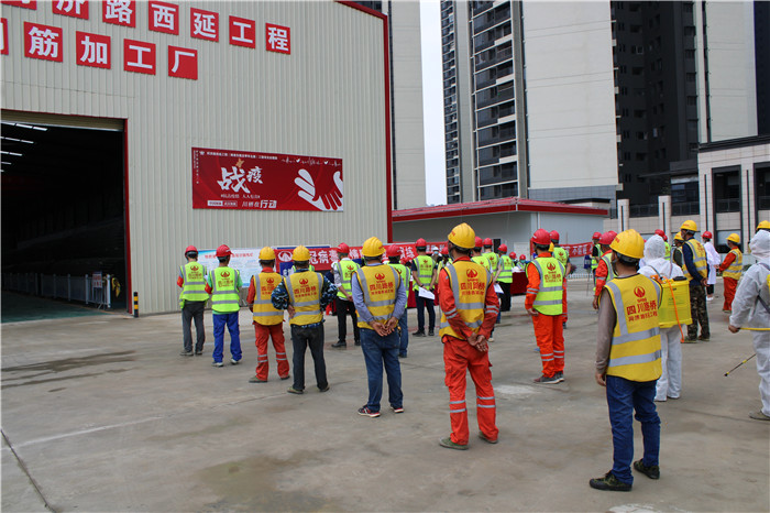 新冠狀病毒阻擊戰(zhàn)持續(xù)近兩個月,治愈率極大提升,社會秩序持續(xù)穩(wěn)定,同濟路西延工程復工生產(chǎn)也穩(wěn)步向前推進。但還未取得疫情防控最終勝利,疫情防控仍需“咬定青山不放松”。為切實提高全體從業(yè)人員的自我防護意識和提升全體員工應(yīng)對突發(fā)疫情的處理能力,確保發(fā)生疫情及突發(fā)事件時,應(yīng)急響應(yīng)工作能高效、有序開展,及時控制事件發(fā)展狀態(tài),減少和消除事故造成的損失和影響。3月23日下午15:30,同濟路西延工程在張槎岸施工現(xiàn)場組織開展了新冠病毒疫情防控應(yīng)急演練,禪城區(qū)交通運輸局交建科科長莊振農(nóng)、安全科人員、建設(shè)單位代表、監(jiān)理單位代表、設(shè)計單位代表至現(xiàn)場進行演練觀摩。
