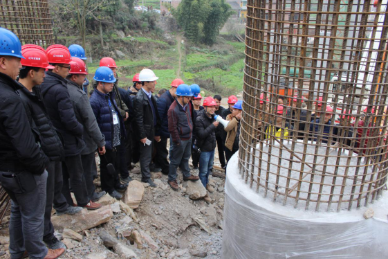 12月10日下午,在JL2總監(jiān)辦的組織下,業(yè)主副總工程師兼工程處處長(zhǎng)張曉波、JL2總監(jiān)辦總監(jiān)黃遠(yuǎn)東及江習(xí)古高速公路TJ1-TJ13分部的人員,觀摩我分部正在施工的新龍臺(tái)大橋墩柱鋼筋保護(hù)層厚度控制措施。