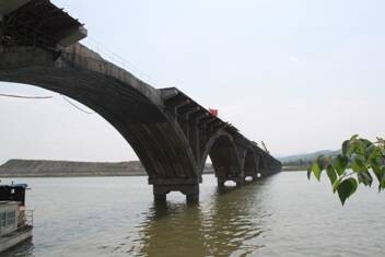 此次加固改造項目總投資1884萬元,合同造價1423萬元,合同工期為11個月,主要施工內(nèi)容為橋梁基礎(chǔ)采用拋石防護處理;主橋拱圈拱腳采用鋼架砼加固、拱腹采用粘貼鋼板加固等工程。截至目前,已完成了合同造價的98%,累計1390萬元。完成了光纜線臨時支架、原結(jié)構(gòu)砼拆除、裂縫修補、粘貼鋼板、石籠防護拋石、主橋主拱圈加固、全橋蓋梁及接長段現(xiàn)澆、主橋橋面板現(xiàn)澆及引橋48塊空心板預制。下一步工作將進行引橋預制空心板安裝工作及橋面鋪裝、安裝燈具欄桿等施工。