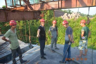 下午四點,蔡董不顧高溫炎熱,一下車就深入施工現(xiàn)場。在項目經(jīng)理詹文等人的陪同下,以路基一隊為起點,沿線檢查了路基一隊、米湯溝大橋、路基二隊、余家溝大橋、預(yù)制場、彭家溝大橋、嘉陵江特大橋。在施工現(xiàn)場,蔡董認(rèn)真察看工程質(zhì)量,仔細詢問施工進度及影響施工進度的主要因素。在聽取了項目經(jīng)理詹文詳盡匯報后,蔡董對項目部不等不靠、千方百計推進項目施工進度表示滿意,同時對項目部取得的成績給予肯定,并提出幾點要求:一是路基一隊的路基要預(yù)留填筑30cm,并在交路前填筑;二是米湯溝大橋要加快7#墩進度,把控好工期,同時,要加強對高墩施工的安全管控,在確保安全的前提下加快進度;三是嘉陵江特大橋懸臂塊件要嚴(yán)把質(zhì)量安全關(guān),將施工質(zhì)量與安全生產(chǎn)放在首位;四是將嘉陵江特大橋索橋的荷載試驗由均布荷載改成集中荷載;五是要加快嘉陵江特大橋17#墩進度,積極推進每月目標(biāo)進度,抓組織,抓質(zhì)量,抓節(jié)點控制,全力確保節(jié)點目標(biāo)順利實現(xiàn);六是要做好防暑降溫工作,適當(dāng)調(diào)整作息時間,避開高溫時段施工,確保勞動安全,安全度夏。