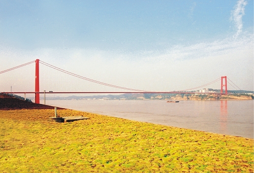 全長1187米,主跨960米,雙塔單跨鋼箱梁懸索橋,2001年9月建成通車。獲2005年詹天佑土木工程大獎(jiǎng)和魯班獎(jiǎng)。