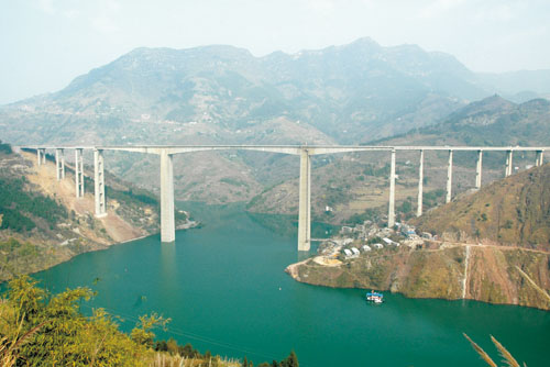 全長950.44米,主跨230米,主墩高156米,預應力砼連續(xù)鋼構橋,2008年12月建成通車。