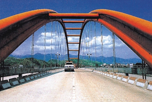 全長(zhǎng)248米,主跨115米,下承式預(yù)應(yīng)力系桿鋼管砼拱橋,1990年5月建成通車。我國(guó)第一座鋼管砼拱橋。
